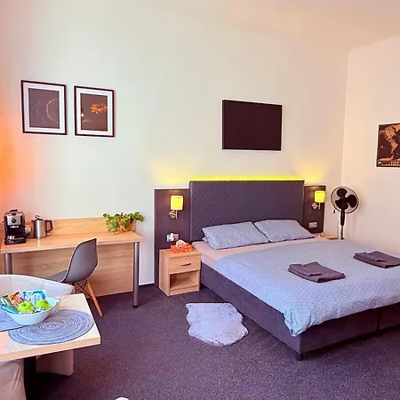 Nove Utulne Studio V Srdci Mesta offers convenient self-catering facilities, including an equipped kitchen with an electric kettle, a refrigerator, and kitchenware. Nove Utulne Studio V Srdci Mesta is in the vicinity of Terminal Hlavni nadrazi bus station.